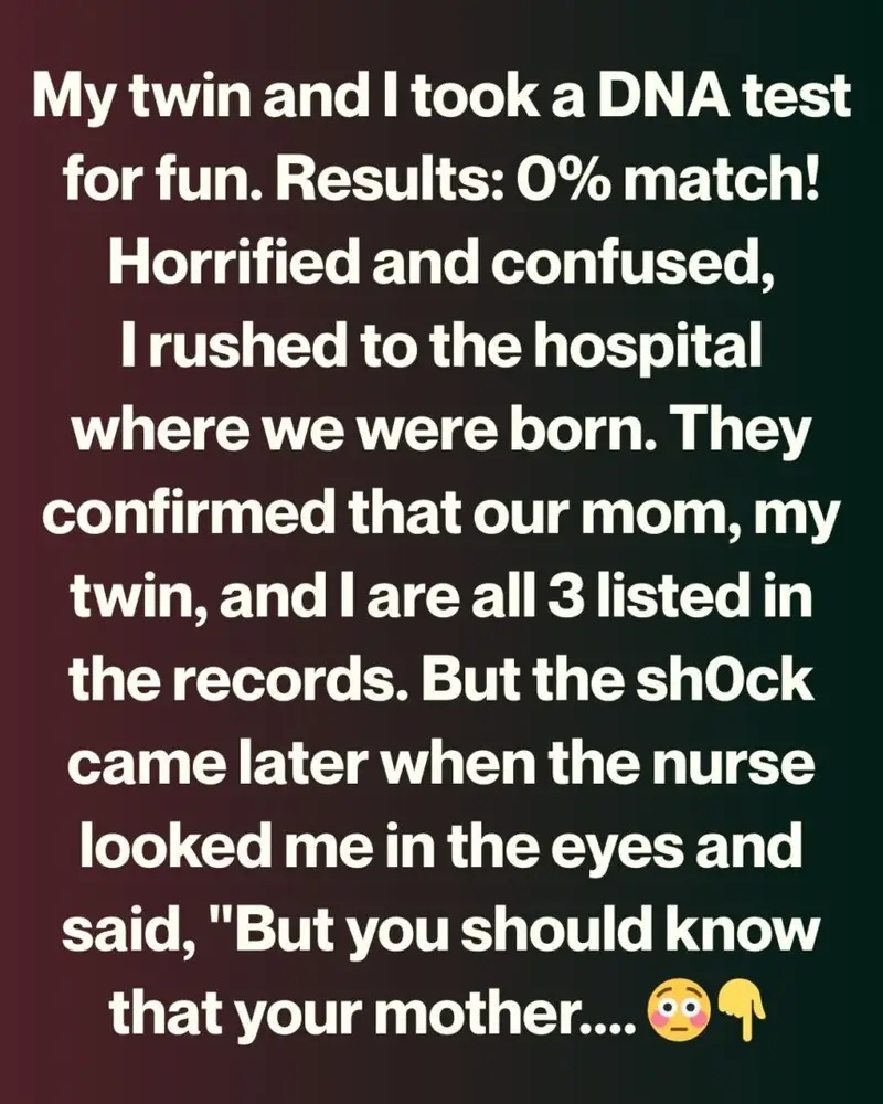 My brother and I are fraternal twins—at least, that’s what I believed for my entire life. Growing up, we were told we shared everything: a birthday, a childhood, a bond that only twins could understand. Recently, just for fun, we decided to take one of those DNA tests.