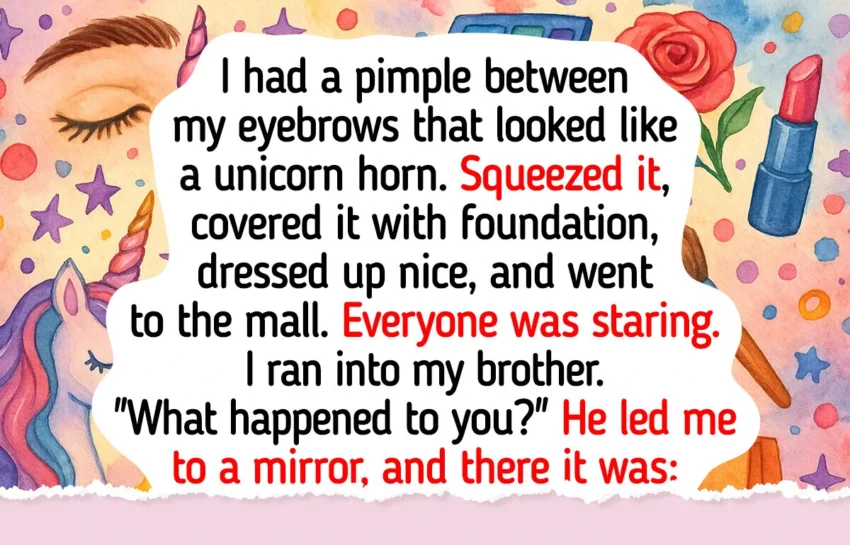 • I had a pimple between my eyebrows that looked like a unicorn horn. Squeezed it, covered it with foundation, dressed up nice, and went to the mall. Everyone was staring.