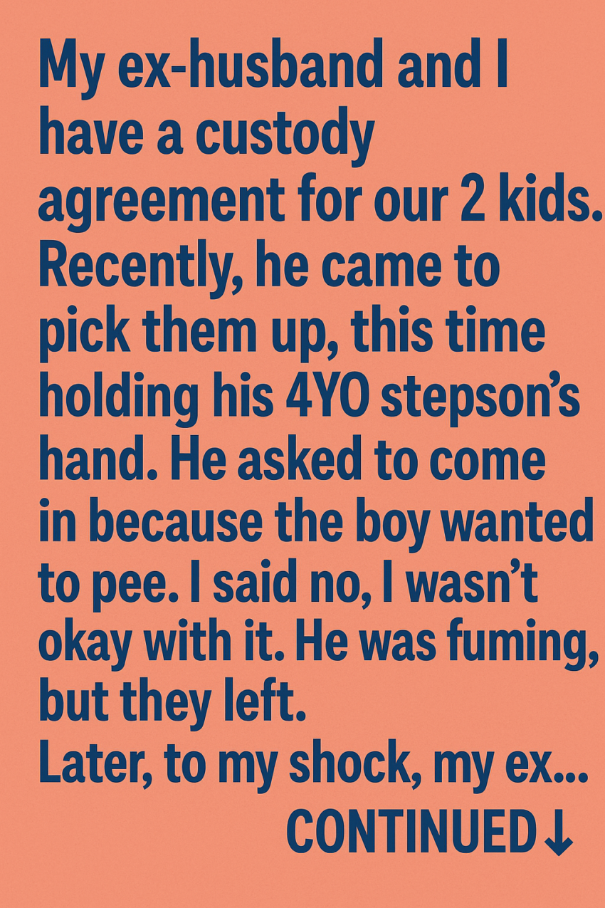 “He opened his front door wide and kept insisting I come inside to show the kids we’re civil. I declined, because I had a bad feeling. Then he refused to let the boys come out unless I stepped inside. My sons eventually ran to me, but his fiancée tried to call them back. I honestly don’t know what his game is, but I’m not walking into that trap.”