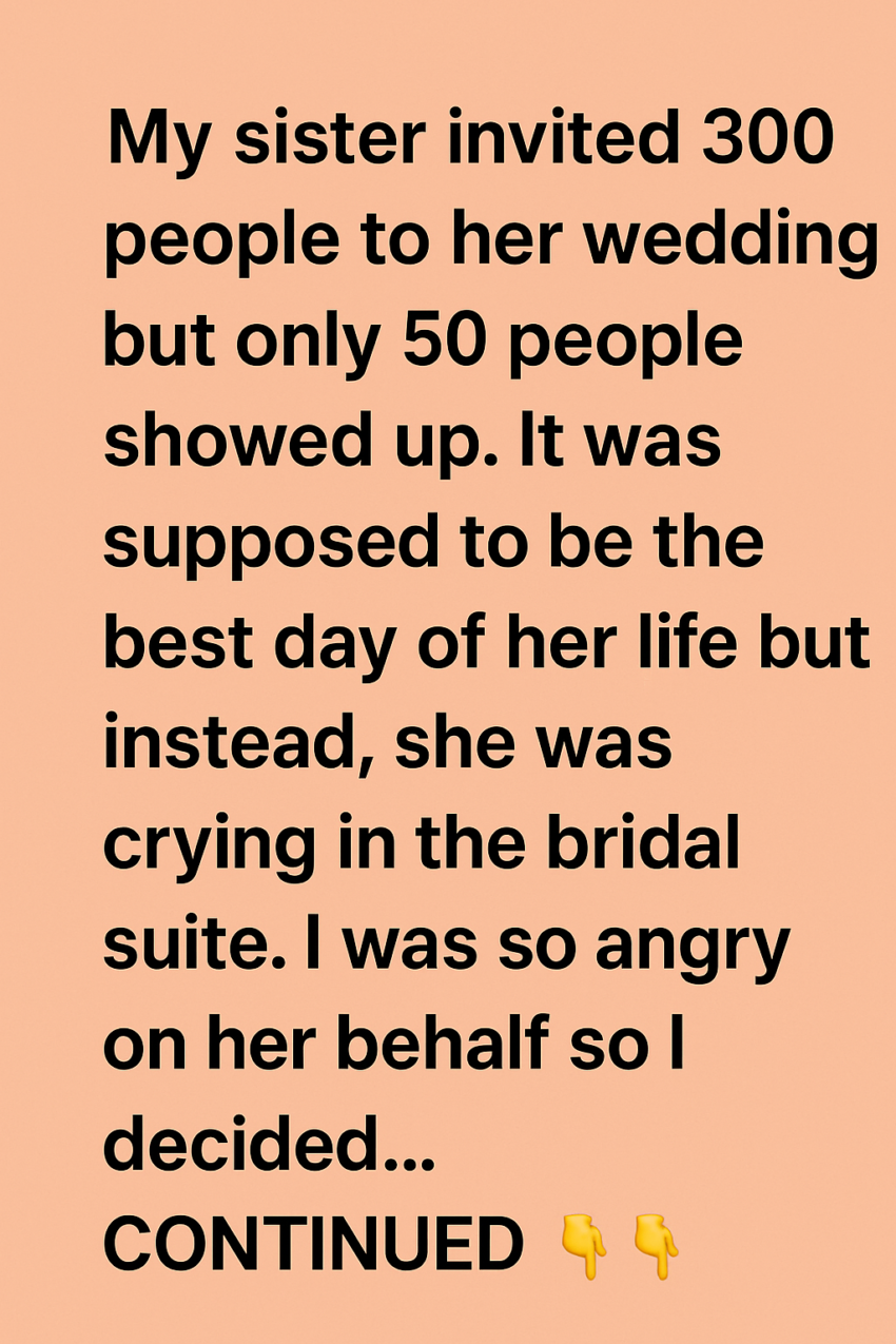 My sister invited 300 people to her wedding, but only 50 showed up. It was supposed to be the best day of her life, but instead, she was crying in the bridal suite. I was furious on her behalf, determined to find out why so many people had vanished.