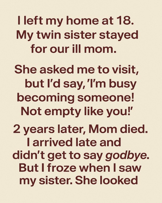 I left home at eighteen with a suitcase, a scholarship, and a stubborn belief that success meant leaving everything familiar behind. My twin sister stayed because our mother’s