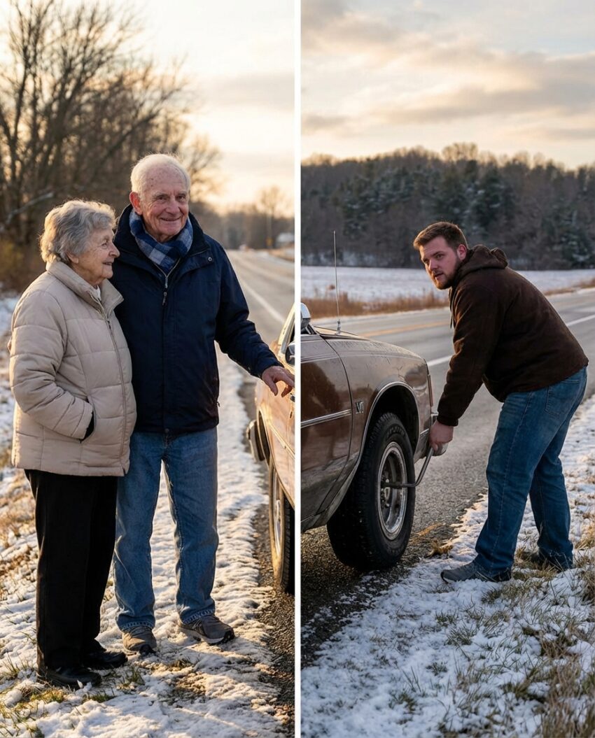 I almost didn’t pull over that day. Snow fell thickly, cars sped past, and my seven-year-old daughter sang happily in the back seat as we drove to my parents’ house for Thanksgiving. But when I saw an elderly couple standing beside a battered car with a flat tire, shivering in thin coats, I couldn’t drive past. Something in me compelled me to stop. I told myself it would only take a few minutes, never imagining that this brief choice would quietly set off a chain of events that would reshape my entire life.