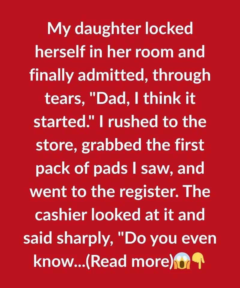 When my daughter locked herself in her room and whispered through tears, “Dad, I think it started,” I felt time pause. She was growing up, and I wasn’t ready—but she needed me to be. I rushed to the nearest store, my mind spinning, and grabbed the first pack of pads I saw. Standing in line, I rehearsed calm words, trying to hide my panic. The cashier glanced at the box and asked sharply, “Do you even know what you’re buying?” Her tone carried judgment, as if a father didn’t belong in that aisle. For a moment, embarrassment crept in. Maybe I should have researched more. Maybe I looked clueless. But then I pictured my daughter’s tearful face, her fear of this unfamiliar change, and I realized something important: love doesn’t wait until you’re perfectly prepared. It shows up anyway.