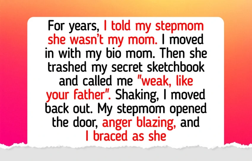 At first, it was great. Then one night my mom went through my room, found a sketchbook I’d been hiding, and threw it in the trash because “art doesn’t pay rent.” When I tried to pull it out, she slammed the lid shut and said, “Stop crying. You’re just like your father—weak and useless.”
