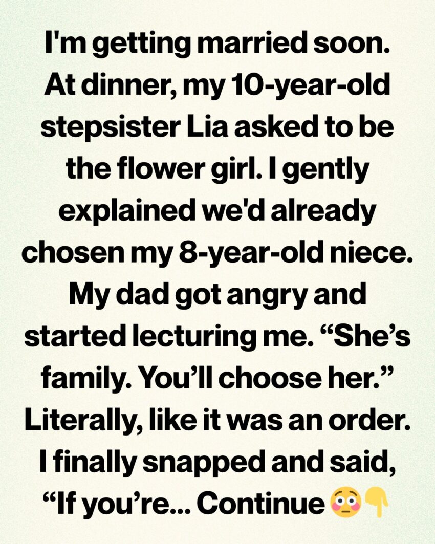 But here’s the thing—I feel cornered over something that wasn’t even an issue until Lia asked. I understand that she’s a child with big feelings. I really do. But my wedding isn’t a participation trophy ceremony, and love doesn’t mean erasing every boundary to keep adults comfortable.