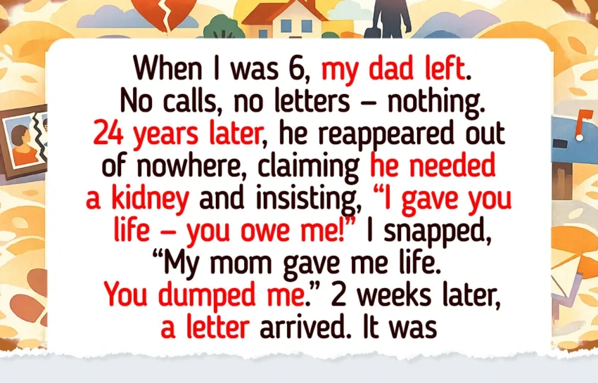 So here’s the situation. My dad walked out when I was 6 — completely disappeared. No calls, no letters, nothing at all.