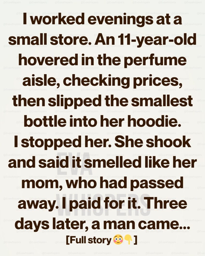 I worked the evening shift at a small convenience store wedged between a pharmacy and a coffee shop. We sold snacks, magazines, cheap jewelry—and, for some reason, a narrow aisle of discounted perfumes near the back wall.