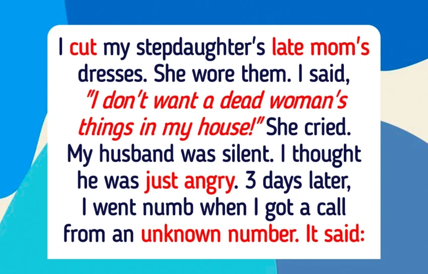 • I cut my stepdaughter’s late mom’s dresses. She had just turned 14 and started to wear them all the time. I told her, “I don’t want a dead woman’s things in my house!”