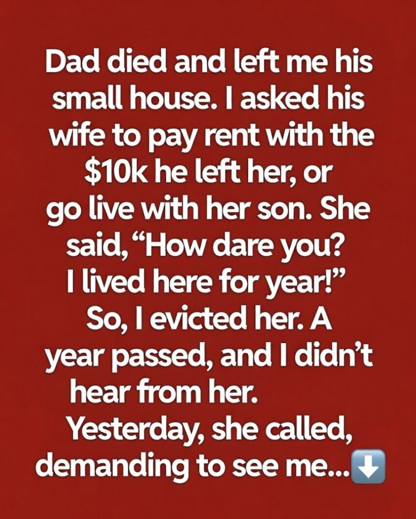 When Dad passed, he left me his small house and gave his wife a separate sum of money. It wasn’t much, but it was his way of making sure both of us had something. For me, that house was more than property—it was a piece of him I could hold on to.