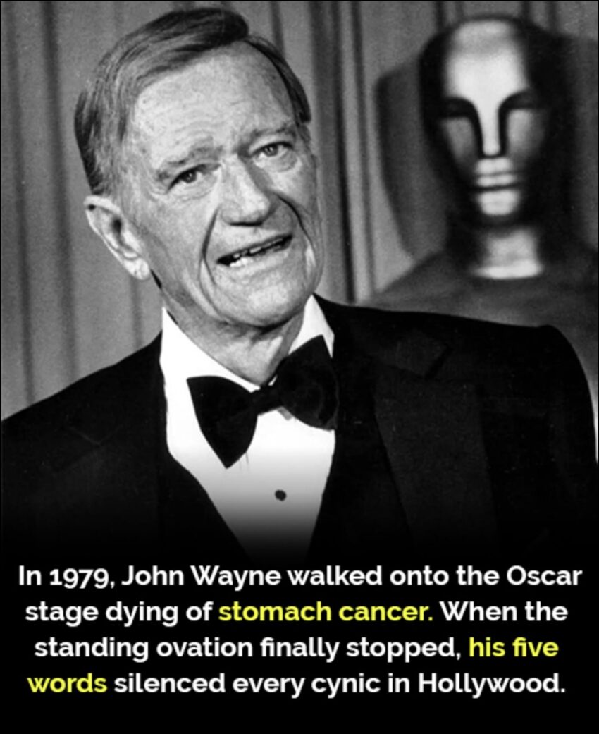 When the applause finally quieted, Wayne spoke in the voice that had carried across cavalry charges and frontier towns for half a century: