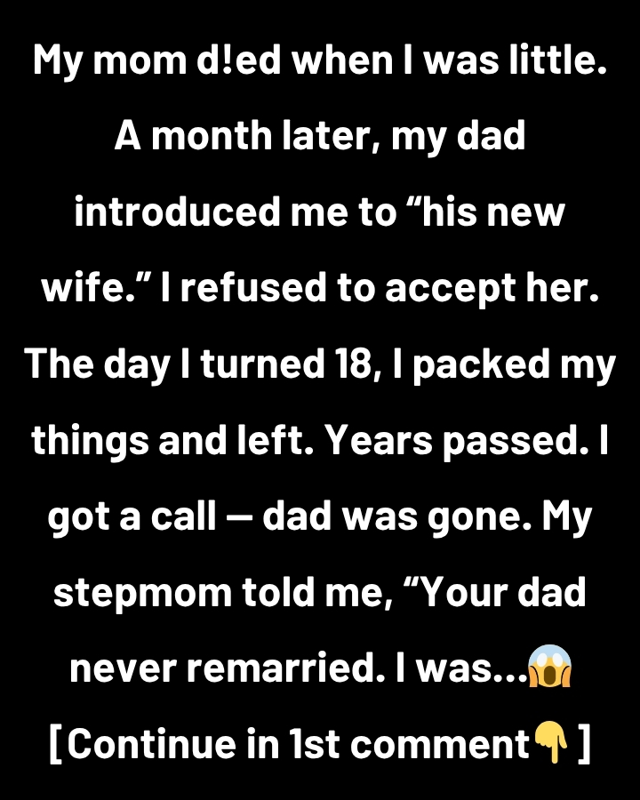 My mom passed away when I was six, and the world felt like it collapsed overnight. Just a month later, my dad introduced me to a woman he called his “new wife.” I remember standing behind him, arms crossed, refusing to look at her. It felt too soon, too wrong—like he was trying to replace my mother. I shut down, built walls, and never let her close. She tried in quiet ways—packing my lunches, attending school plays, leaving notes on my desk—but I saw it as pretending. The day I turned eighteen, I packed my bags without a goodbye and left. I told myself I didn’t need them. Years passed in stubborn silence. Then one afternoon, I got the call: my dad was gone. The words didn’t sink in at first. I drove back to the house I hadn’t stepped into in nearly a decade, unsure what I would feel.