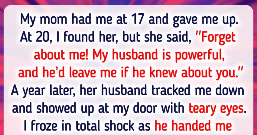 • My mom had me at 17 and gave me up. At 20, I found her, but she said, ’’Forget about me! My husband is a powerful man, and he’d leave me if he knew about you.’’ A year later, her husband tracked me down and showed up at my door with teary eyes. My entire reality shifted as he revealed that everything my mother told me that day was a complete lie.