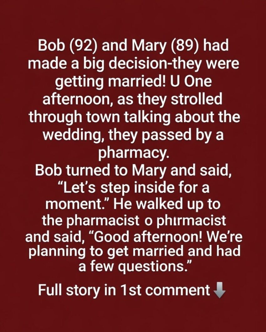 One afternoon, as they strolled through town talking about the wedding, they passed by a pharmacy. Bob turned to Mary and said, “Let’s step inside for a moment.”