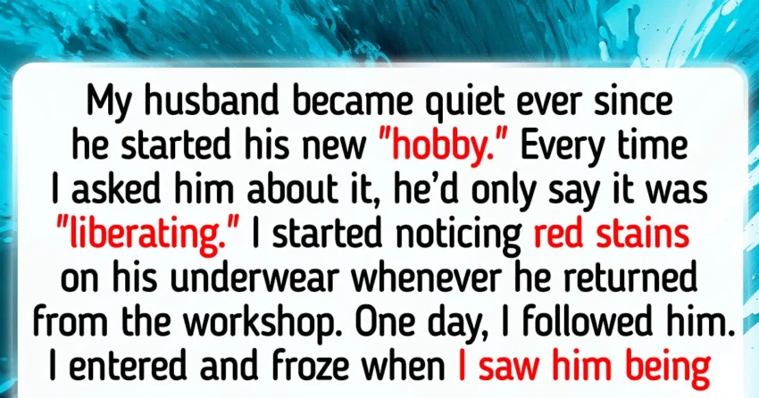 - My husband became quiet ever since he started his new “hobby.” Every time I asked him about it, he’d only say it was “liberating.” I started noticing red stains on his underwear whenever he returned from the workshop. One day, I followed him.