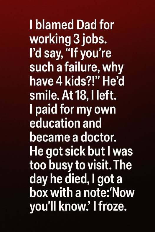 Every memory I had of him stumbling through the door late, eating reheated leftovers standing at the counter, falling asleep in his chair before asking about school—it all shifted. I remembered thinking he didn’t want to be around us, that he didn’t care. But the truth was sitting there in ink: he cared so much he sacrificed pieces of himself to make sure we never saw how heavy the load was.