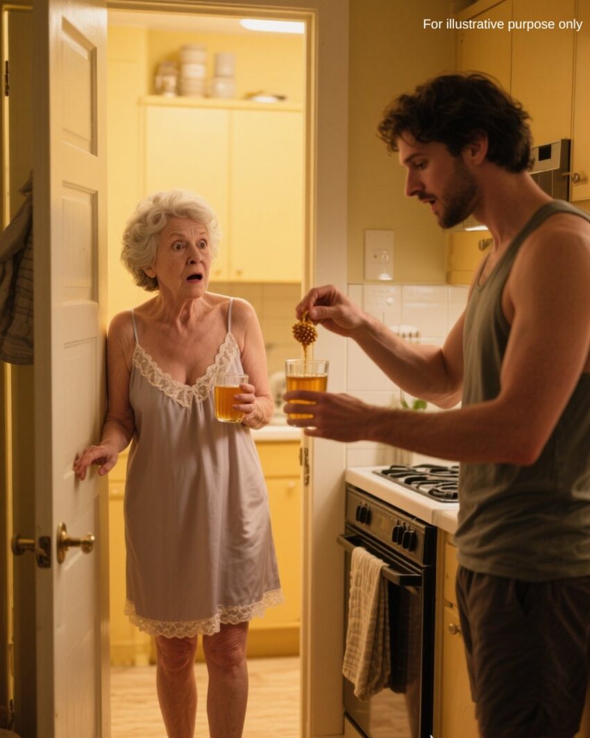 He stood by the counter, humming softly. I saw him pour warm water into my usual glass, open a drawer, and pull out a small amber bottle.