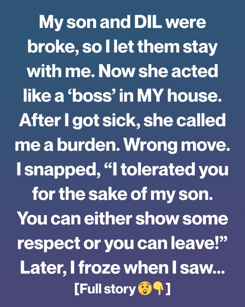“I tolerated you for the sake of my son,” I told her, my voice shaking with anger. “You can either show some respect in my home, or you can leave.”