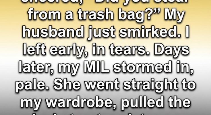 When I walked into the living room, my mother-in-law’s eyes swept over me, and a thin smile curled across her lips. Loud enough for others to hear, she asked whether I had taken the jacket from a trash bag. A few nervous laughs followed.
