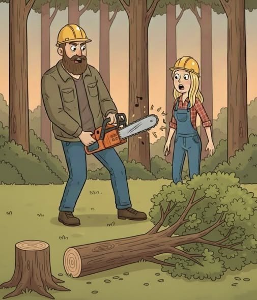 When the day was over the contractor visited to see she’d only chopped down one tree. The contractor asked the blonde what was wrong. She said: “This saws no good boss, I worked all day but could only do one tree.”