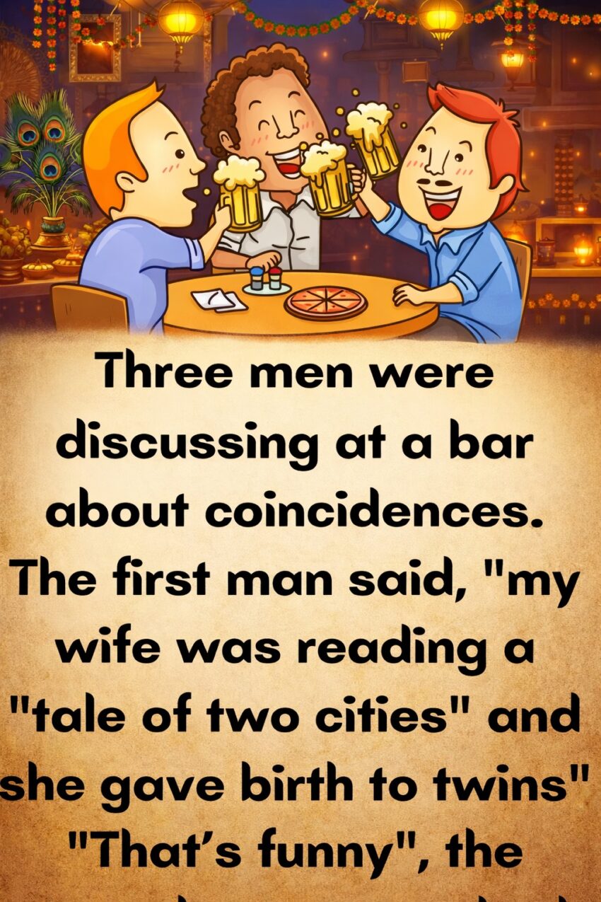 “That’s funny”, the second man remarked, “my wife was reading ‘the three musketeers’ and she gave birth to triplets”