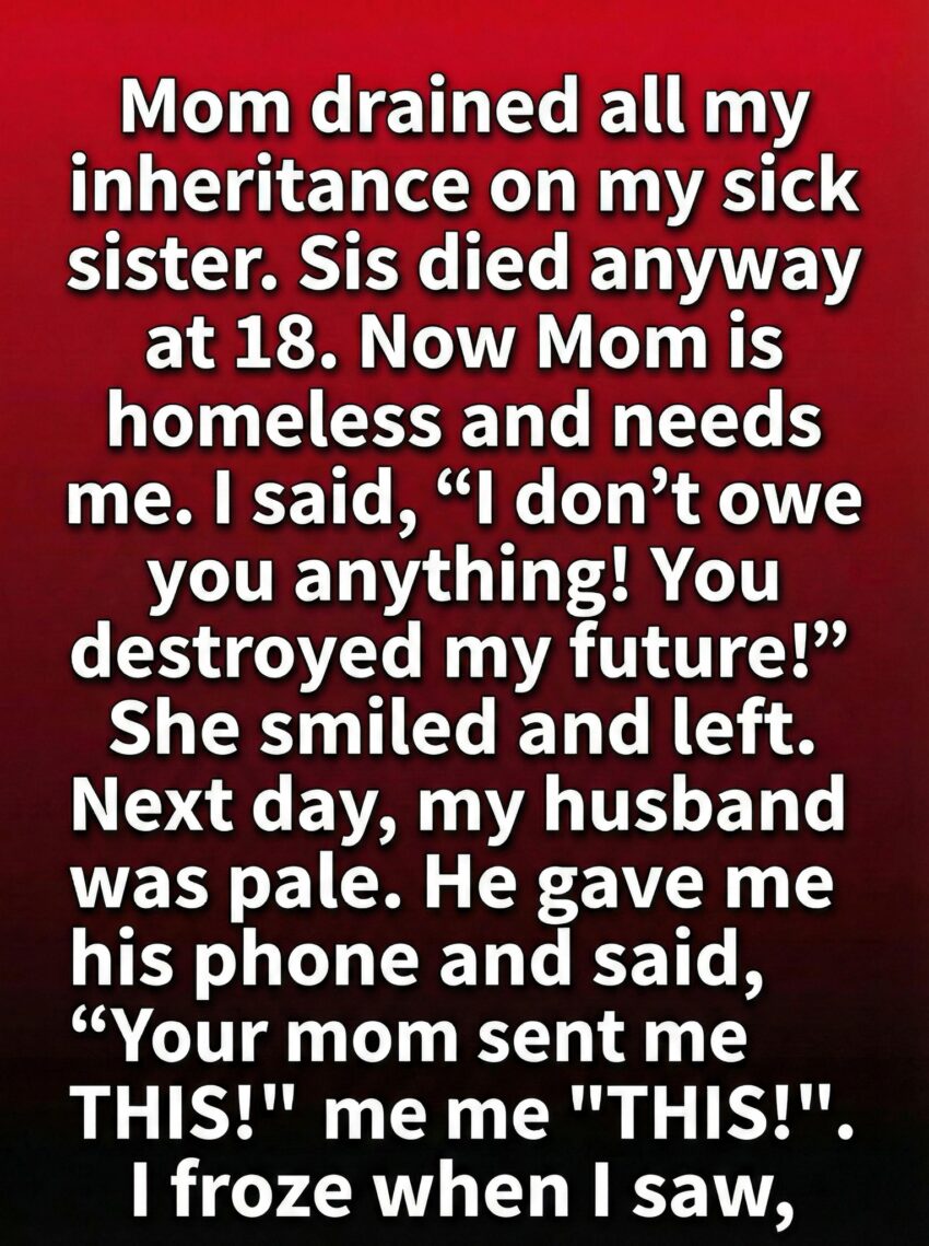 The next morning, Mara found her husband standing in the kitchen, pale as paper. He didn’t speak at first; he simply handed her his phone. On the screen was a message from an unknown number, sent late in the night. It was from her mother. The message contained a photo: a folded document beside a small silver locket Mara recognized as her sister’s favorite. Beneath it were a few lines: “I never touched your inheritance. I spent my own savings. The account is in your name alone. I kept this locket to give you when you were ready.” There was also an address, scribbled as if written in haste. Mara’s hands shook. She read the message three times, trying to reconcile it with the rage that had fueled her the night before.