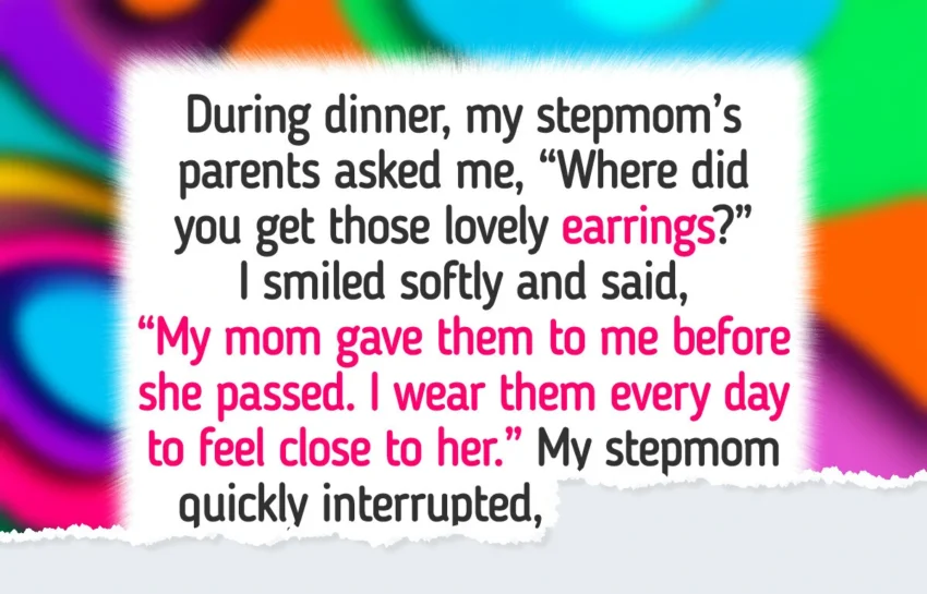 During dinner, my stepmom’s parents asked me, “Where did you get those lovely earrings?” I smiled softly and said, “My mom gave them to me before she passed. I wear them every day to feel close to her.”