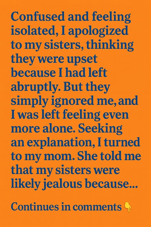 Confused and feeling isolated, I apologized to my sisters, assuming they were upset because I had left so abruptly. But they didn’t respond at all. No calls. No messages. Just silence. Their indifference cut deeper than anger ever could, leaving me feeling more alone than I’d ever felt before.