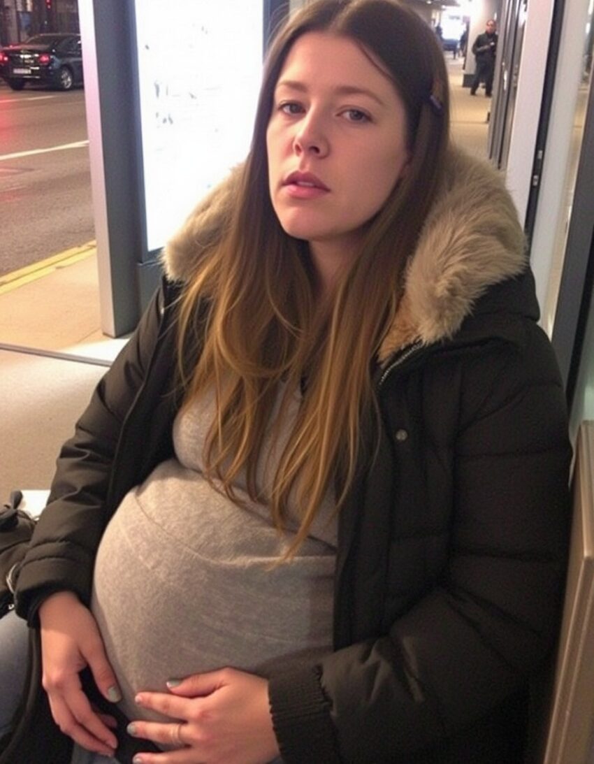 She couldn’t have been more than 20, maybe 21, with this huge pregnant belly stretching her too-thin coat, one hand braced on the wall and the other clutched around her middle like she was holding herself together.